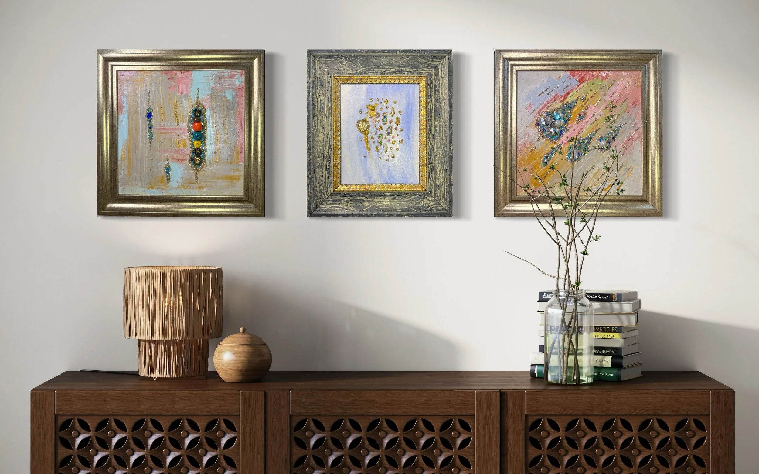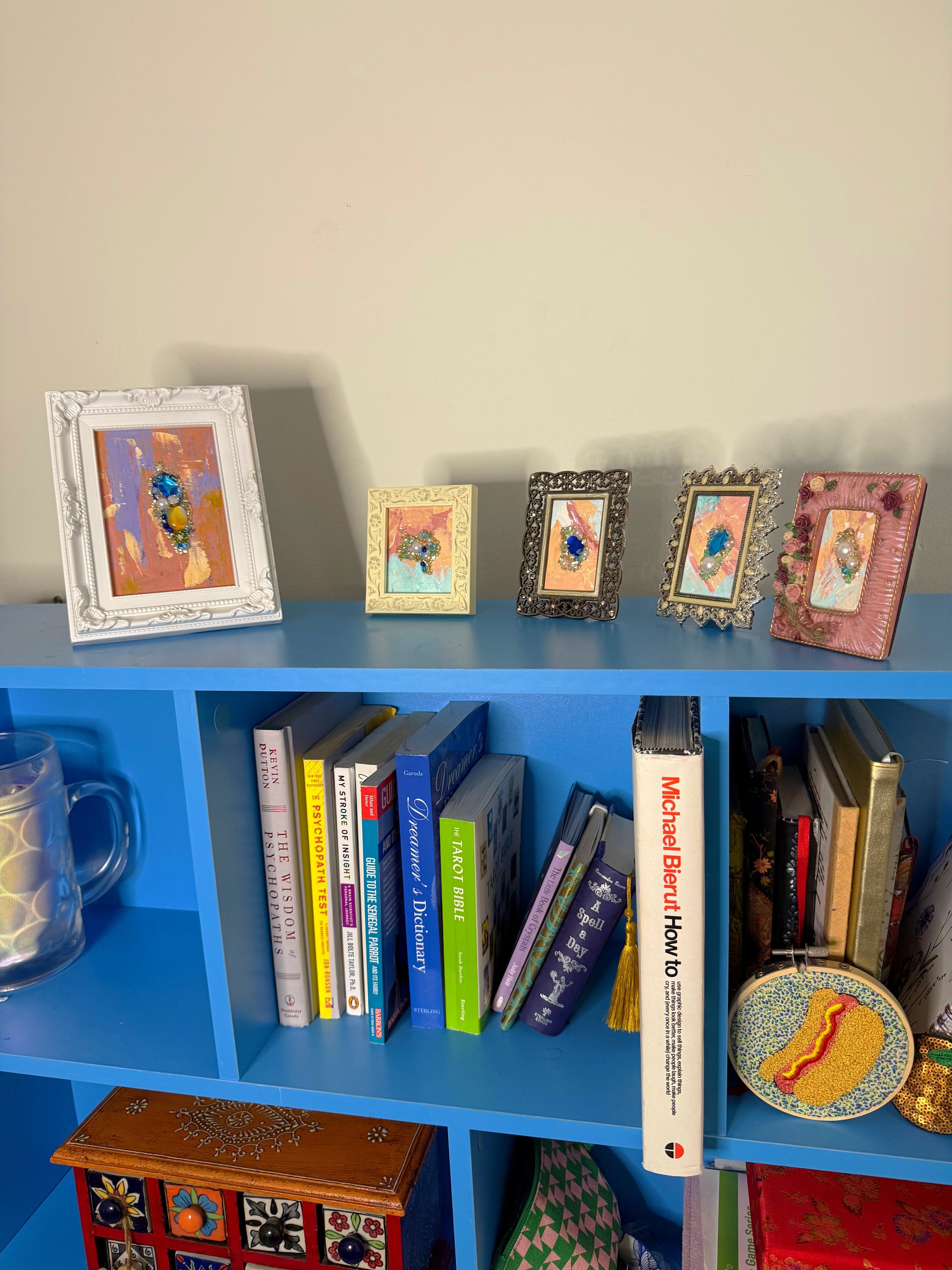 Colorful, original artwork for colorful, original people. Welcome to my gallery. Please enjoy browsing my latest original paintings and sparkle art. Feel free to contact me with any questions or good jokes! Vintage Framed Sparkle Art 2025 Categories: All Vintage Framed Sparkle Art 2025 All / Gentle Green Gardens $75.00 Sold Out A little Blue $60.00 Chains of Glamour $150.00 A Pearl of a Place $150.00 Pieces of my Broken Heart $150.00 Fallin' $290.00 Almost $290.00 The Fabulous Big Bang $1,000.00 The Hardest Button to button $75.00 The Tiny Rose Garden $30.00 Sold Out Tiny and Shiny $30.00 Sold Out The Intrigue of Shiny $30.00 Sold Out A soft glamour $30.00 Sold Out Drops of Jupiter $75.00 Sold Out The Business of Sparkle $60.00 Rhinestone Ambitions $75.00 Sold Out Glamour in Retrograde $75.00 Sold Out Forever in Blue Jeans Baby $150.00 Graceful Glamour $925.00 Golden Sister $310.00 Sold Out Golden Inner Worlds $310.00 Sold Out The Glamour in Chaos $150.00 Sold Out I call her The Pearl $200.00 A Map to Glamour $150.00 Sold Out The Allure of Crystals $75.00 Sold Out White Wedding $60.00 Fabulous Ancient Aliens $150.00 Sold Out Golden Vacations $75.00
